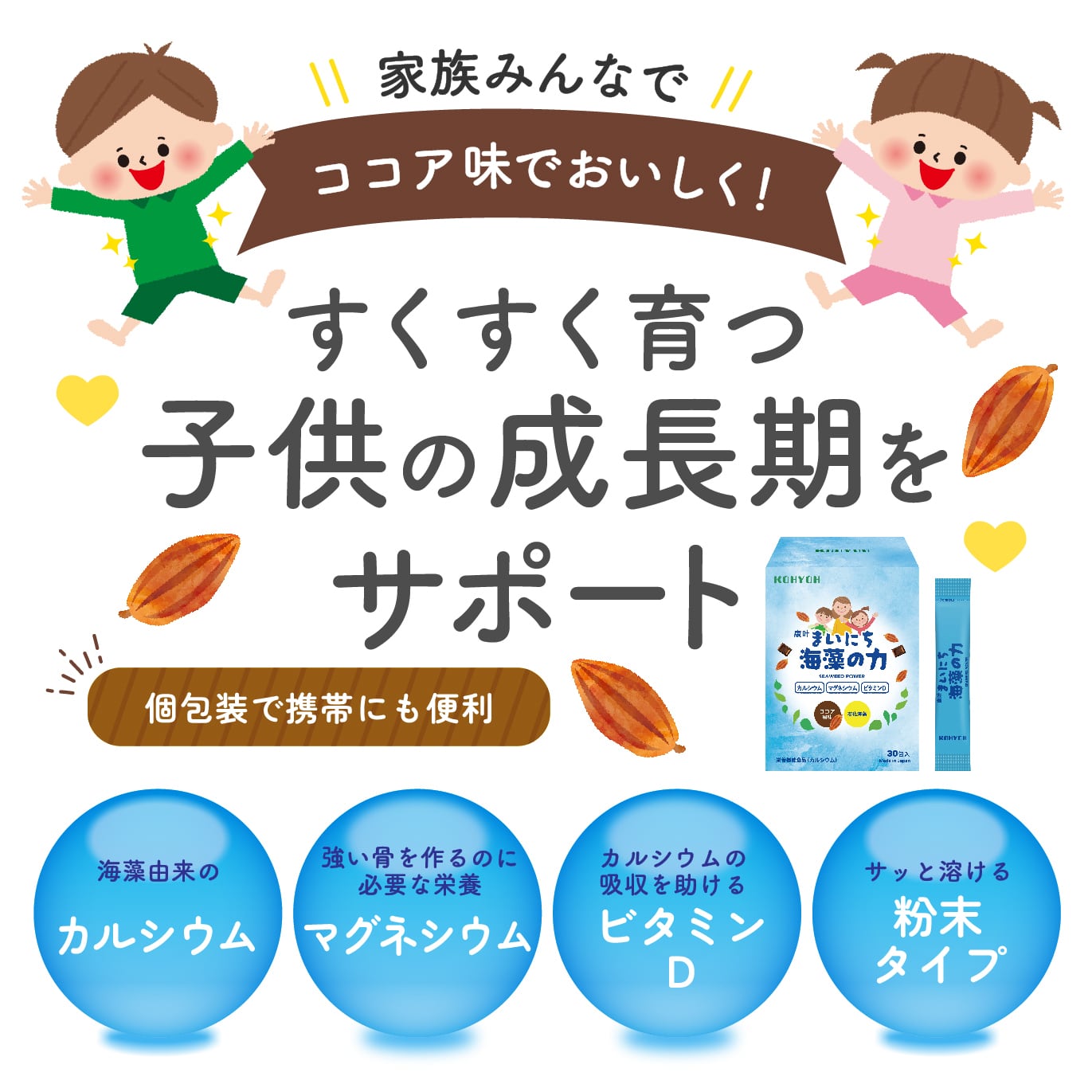 ■原材料名:還元麦芽糖水飴(国内製造)、海藻末、粉糖、ココア末/酸化マグネシウム、香料、リン酸三カルシウム、甘味料(ステビア)、ビタミンD