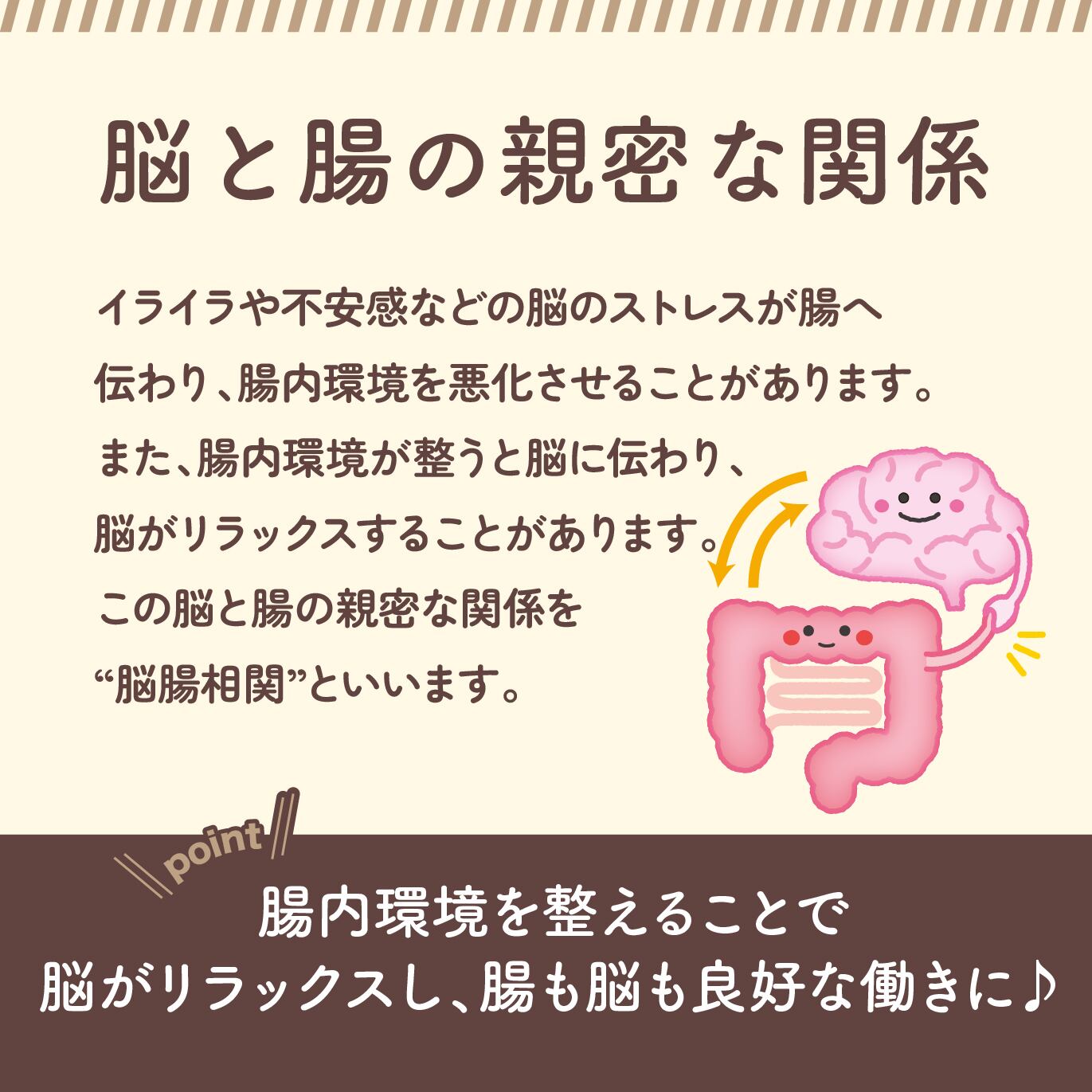 4.ストレス緩和 人間の脳と腸がお互いに影響を与え合っているという「脳腸相関」。腸内環境が改善されると、脳そして精神状態に良い影響があることがわかっています。