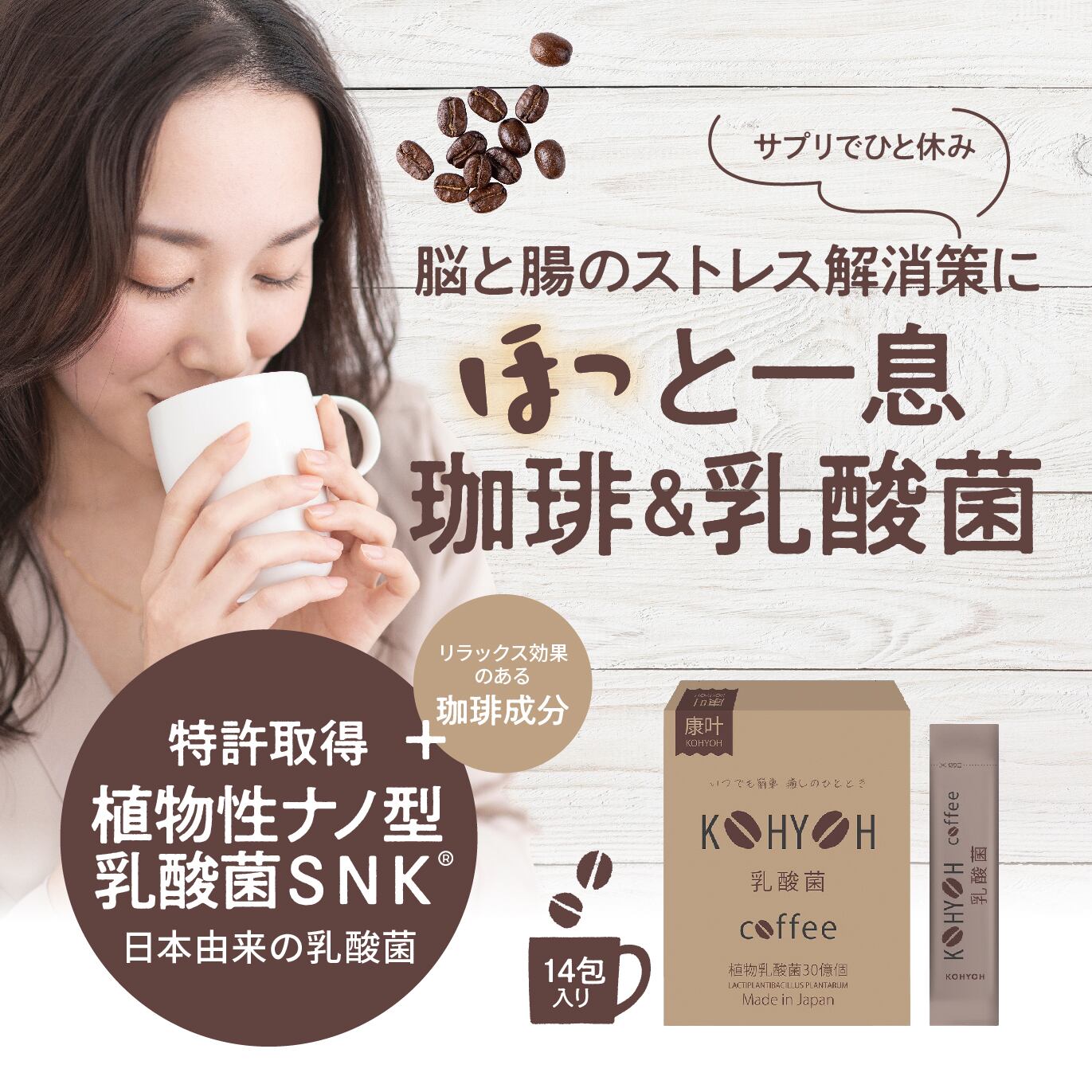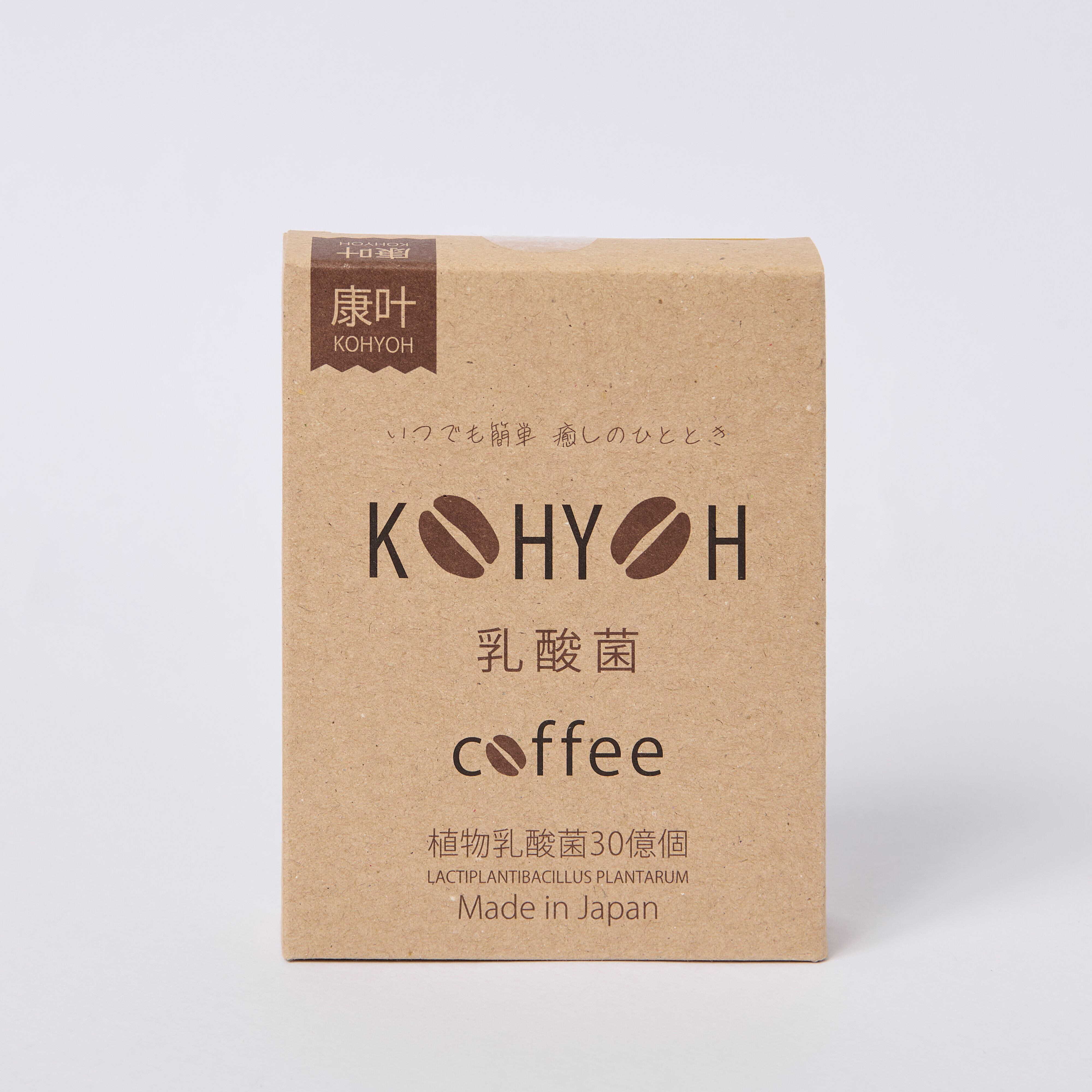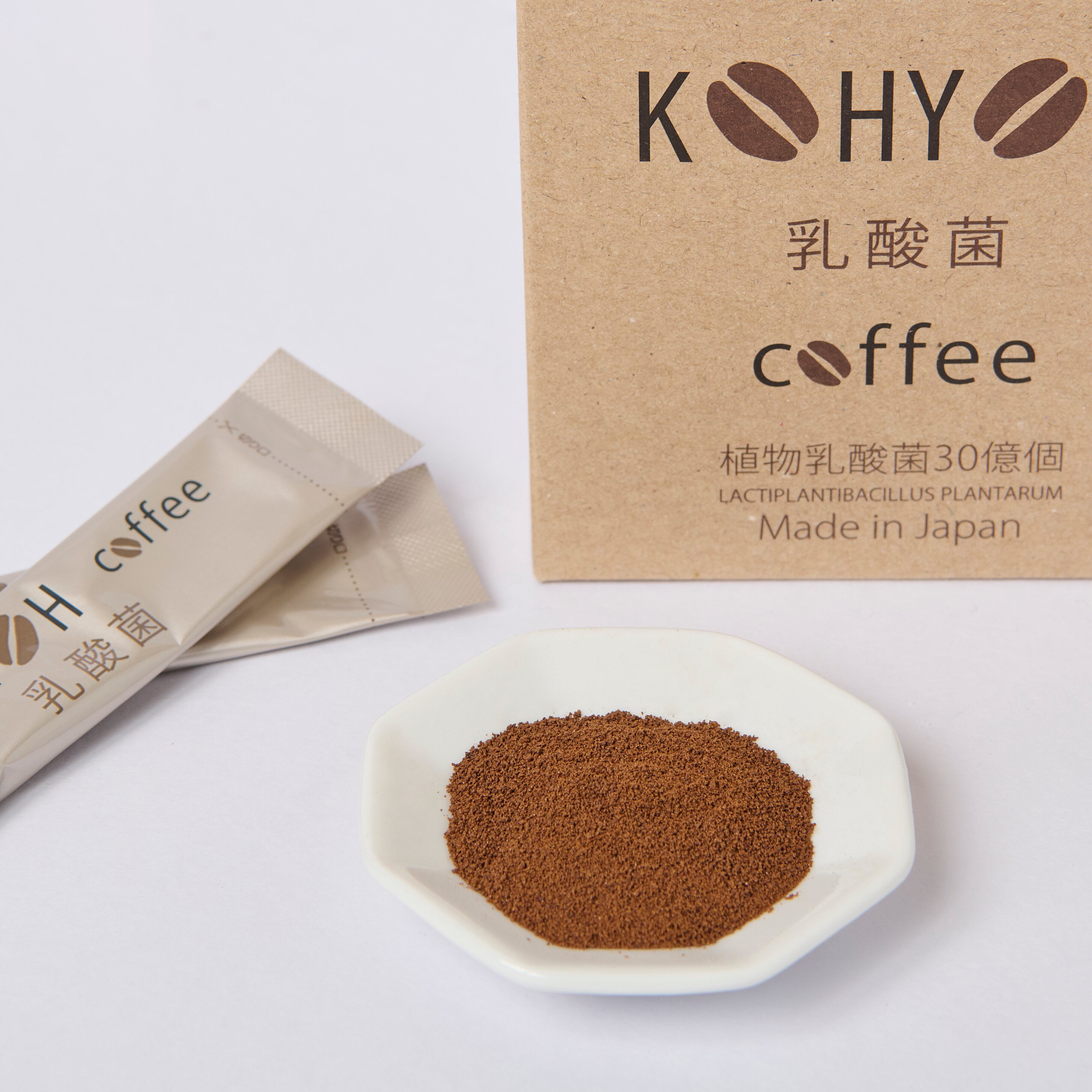 KOHYOH 乳酸菌coffeeは、おいしくて飲みやすいコーヒーに乳酸菌をプラスしました。1包あたり30億個の乳酸菌が含まれており、腸内環境を整えるのに役立ちます。忙しい日々の中でも、手軽においしく乳酸菌を摂取できるのが魅力です。