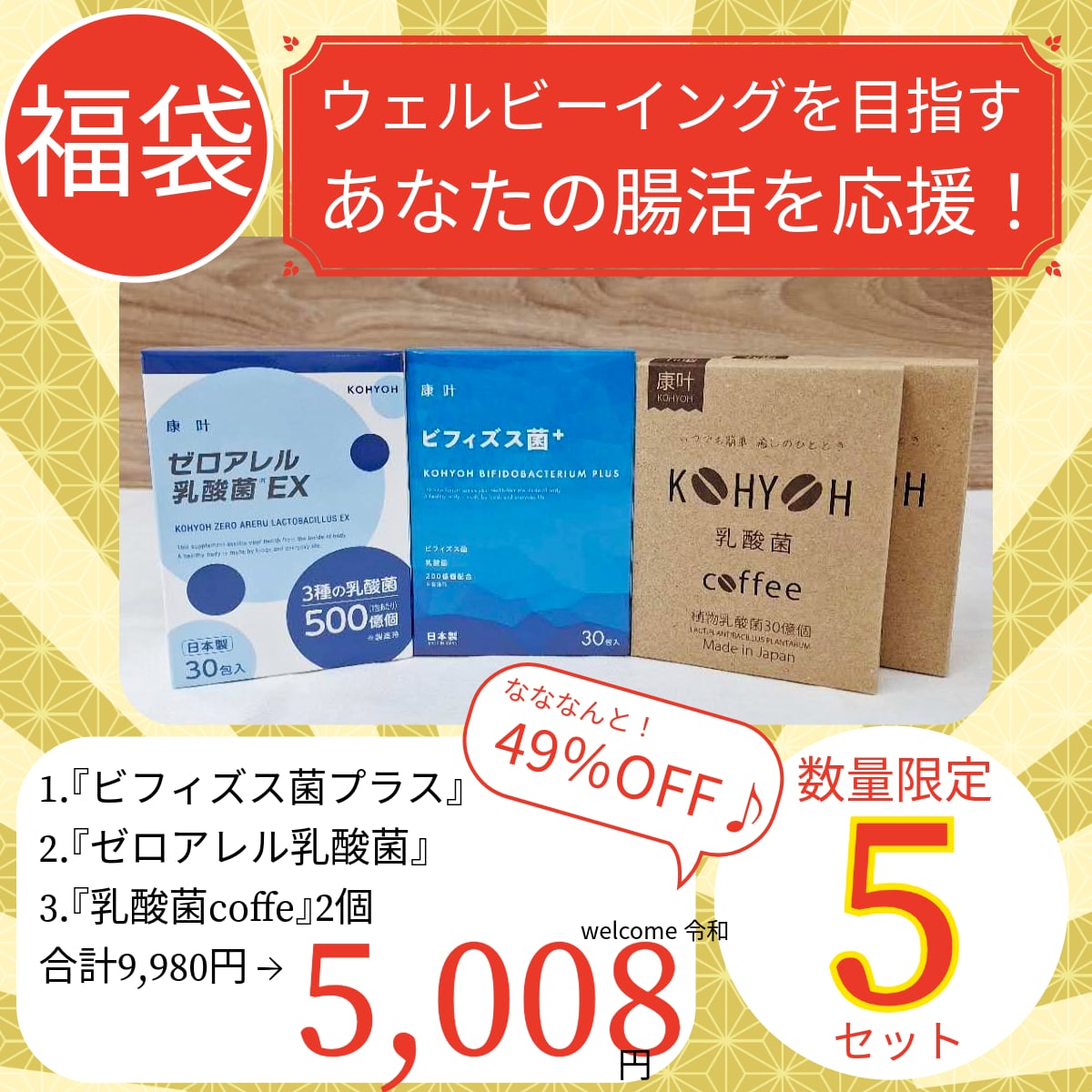【福をよぶ福袋2026】ウェルビーイングを目指すあなたの腸活を応援!KOHYOH ビフィズス菌+(PLUS)、ゼロアレル乳酸菌、乳酸菌coffee | KOHYOH コーヨー 健康食品オンラインショップ