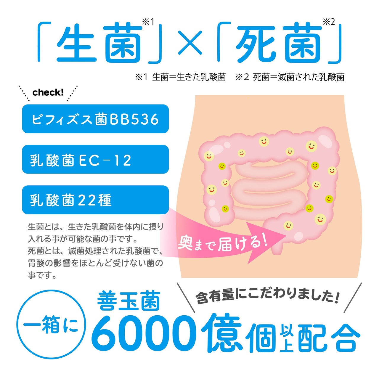 1箱に善玉菌6,000億個以上配合!