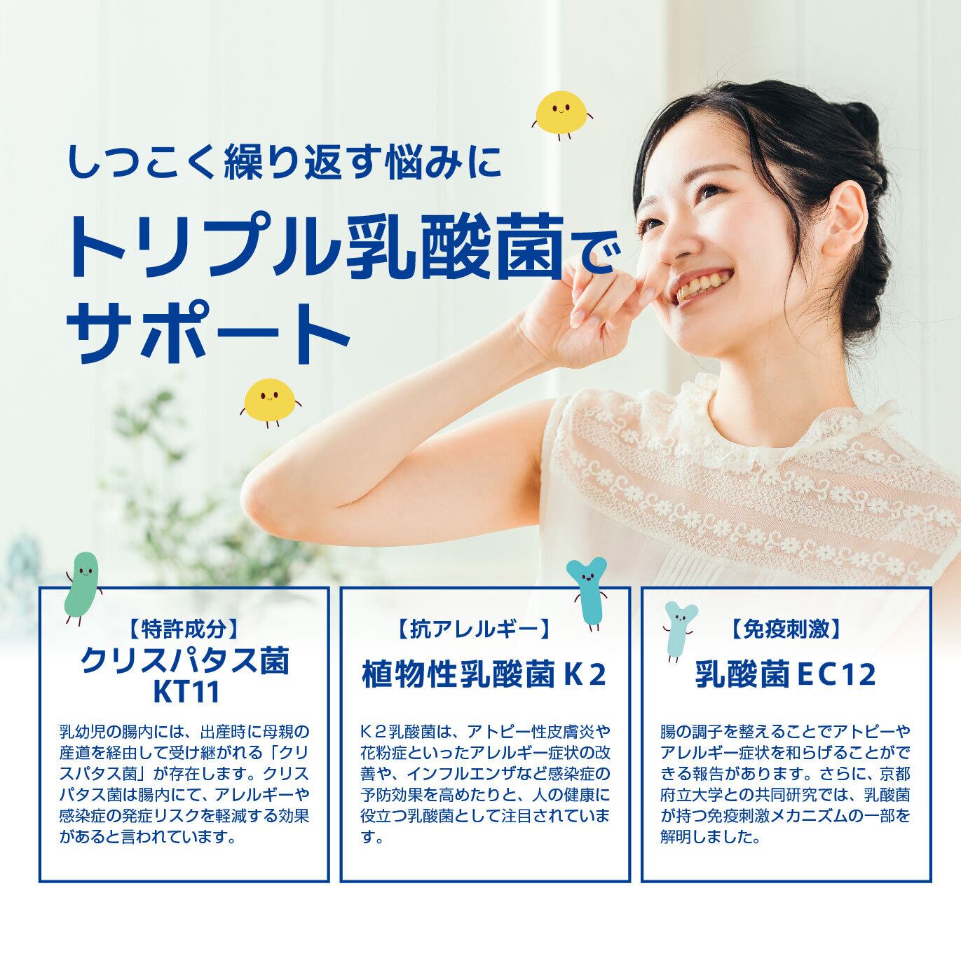 3つの乳酸菌で内側から戦うカラダへ!
