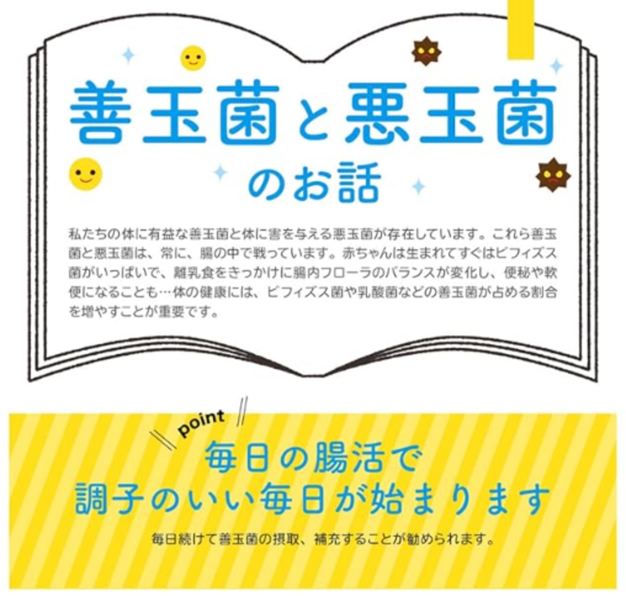 毎日の食生活で腸内環境に良い食べ物をなるべく多く摂るように、とわかっていても、お子さまの偏食や少食に悩んだり、反対にスナック類やジュースなどの摂りすぎに悩んだり…