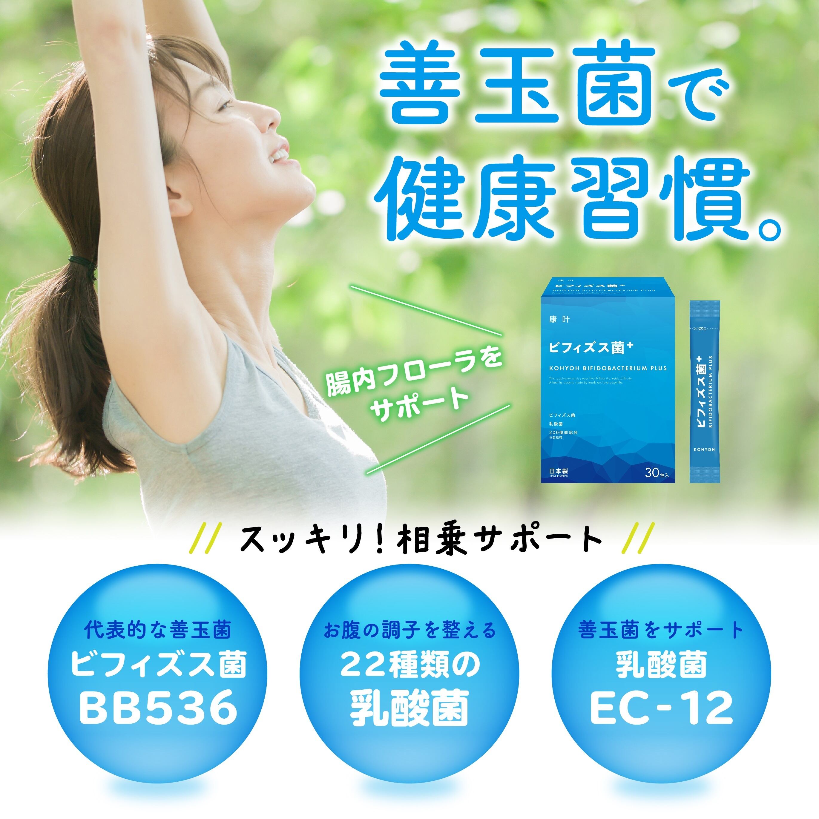 腸内から毎日の健康をサポートする「ビフィズス菌+(PLUS)」です。